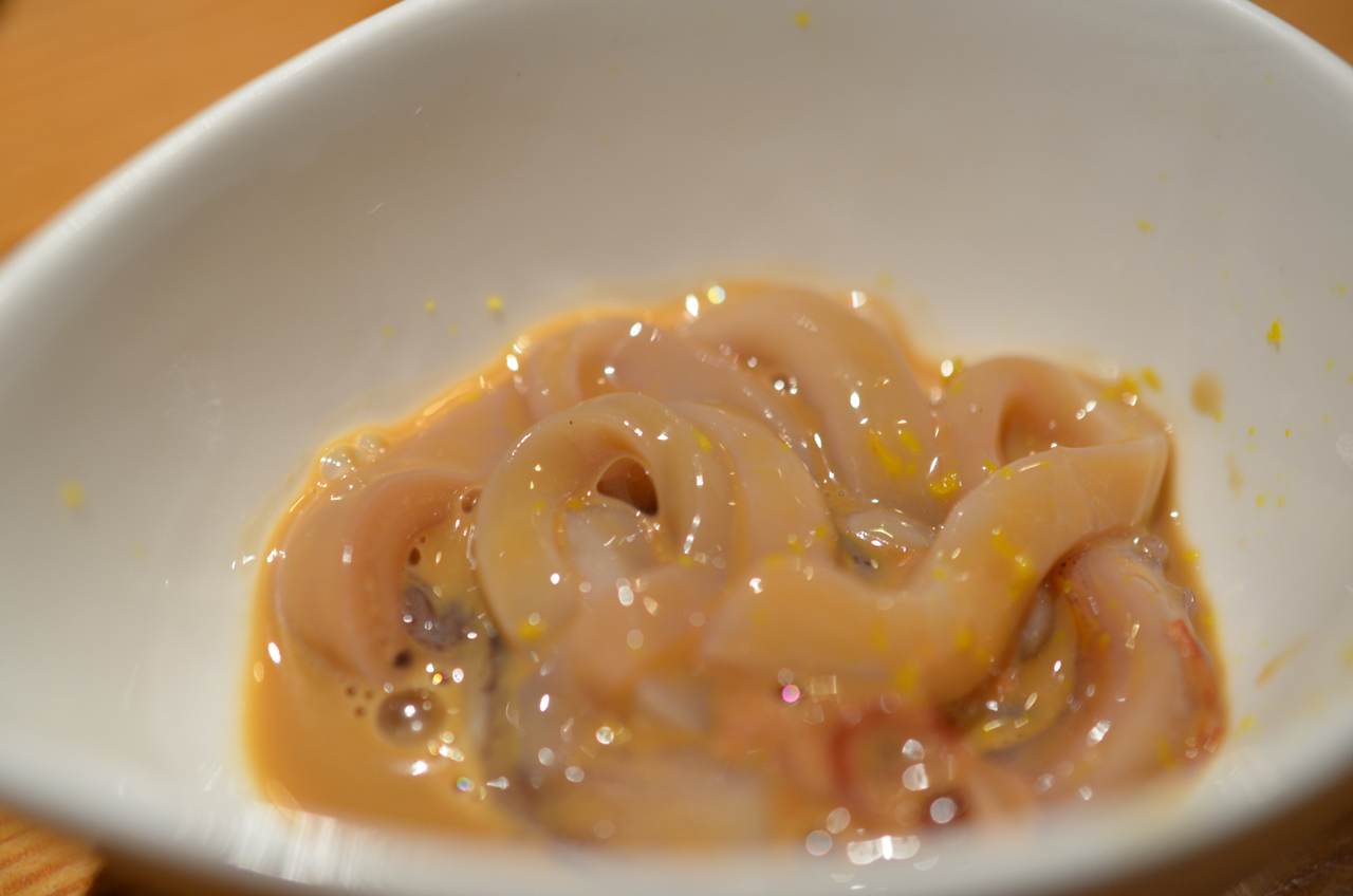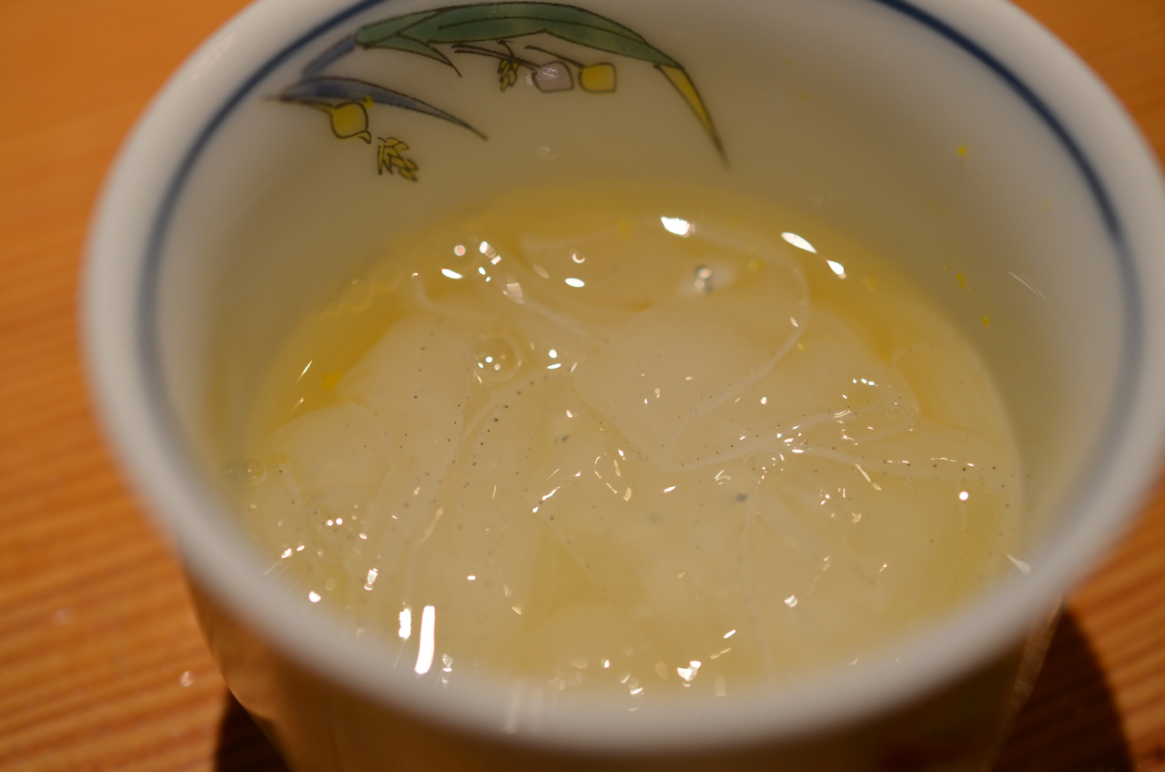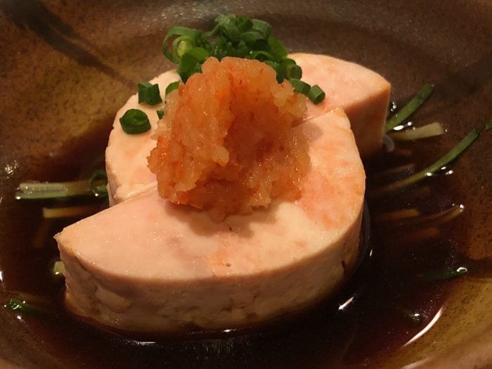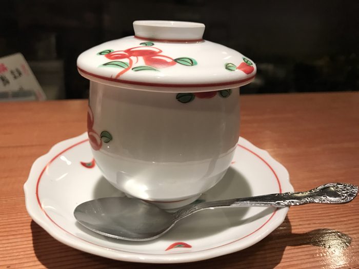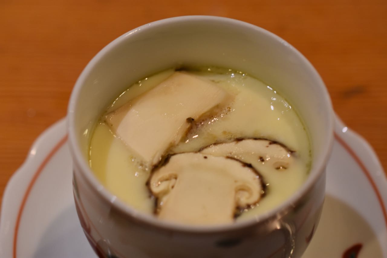 こちらは茶わん蒸し。一枚目の写真だと分からないけど、中にはたっぷり白子が入ってるんです!