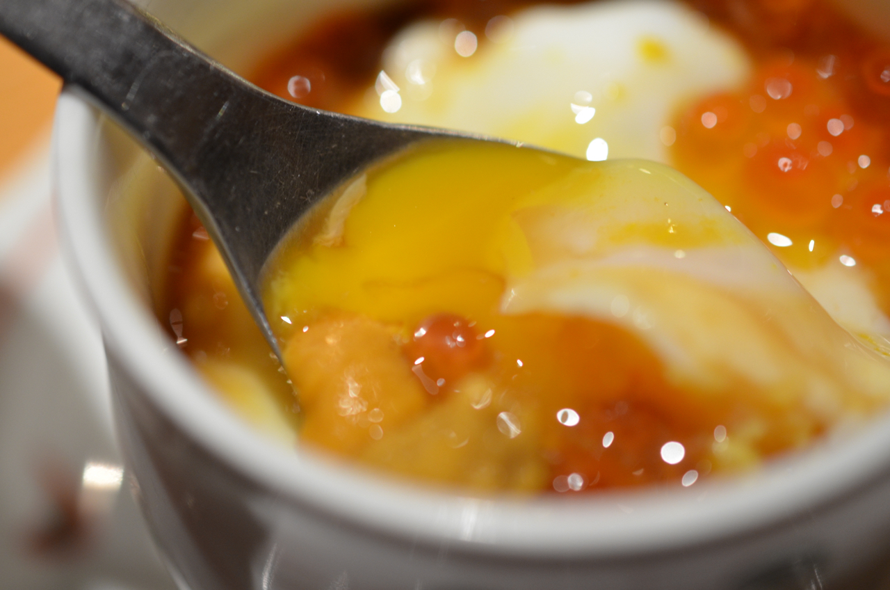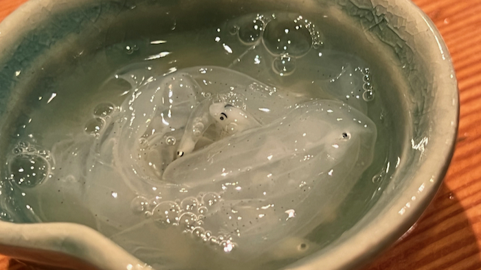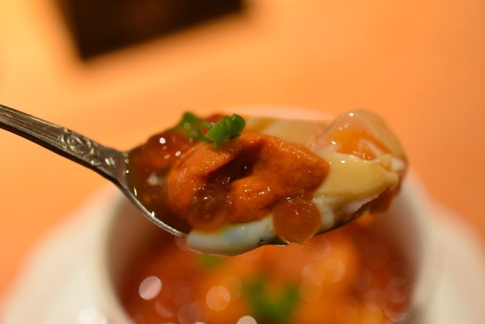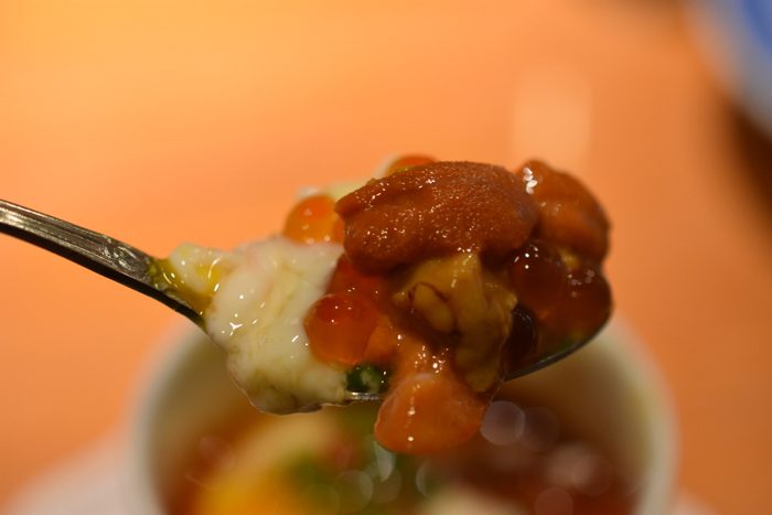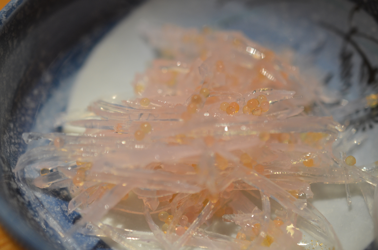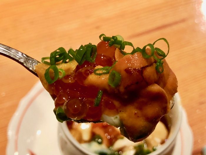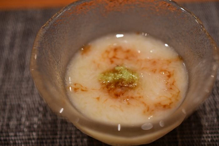 こちらは茶わん蒸し。一枚目の写真だと分からないけど、中にはたっぷり白子が入ってるんです!