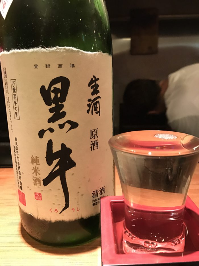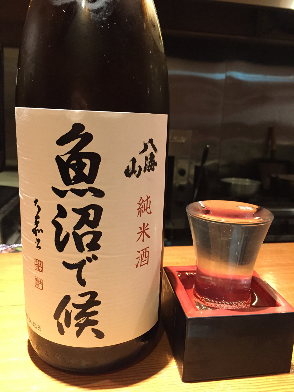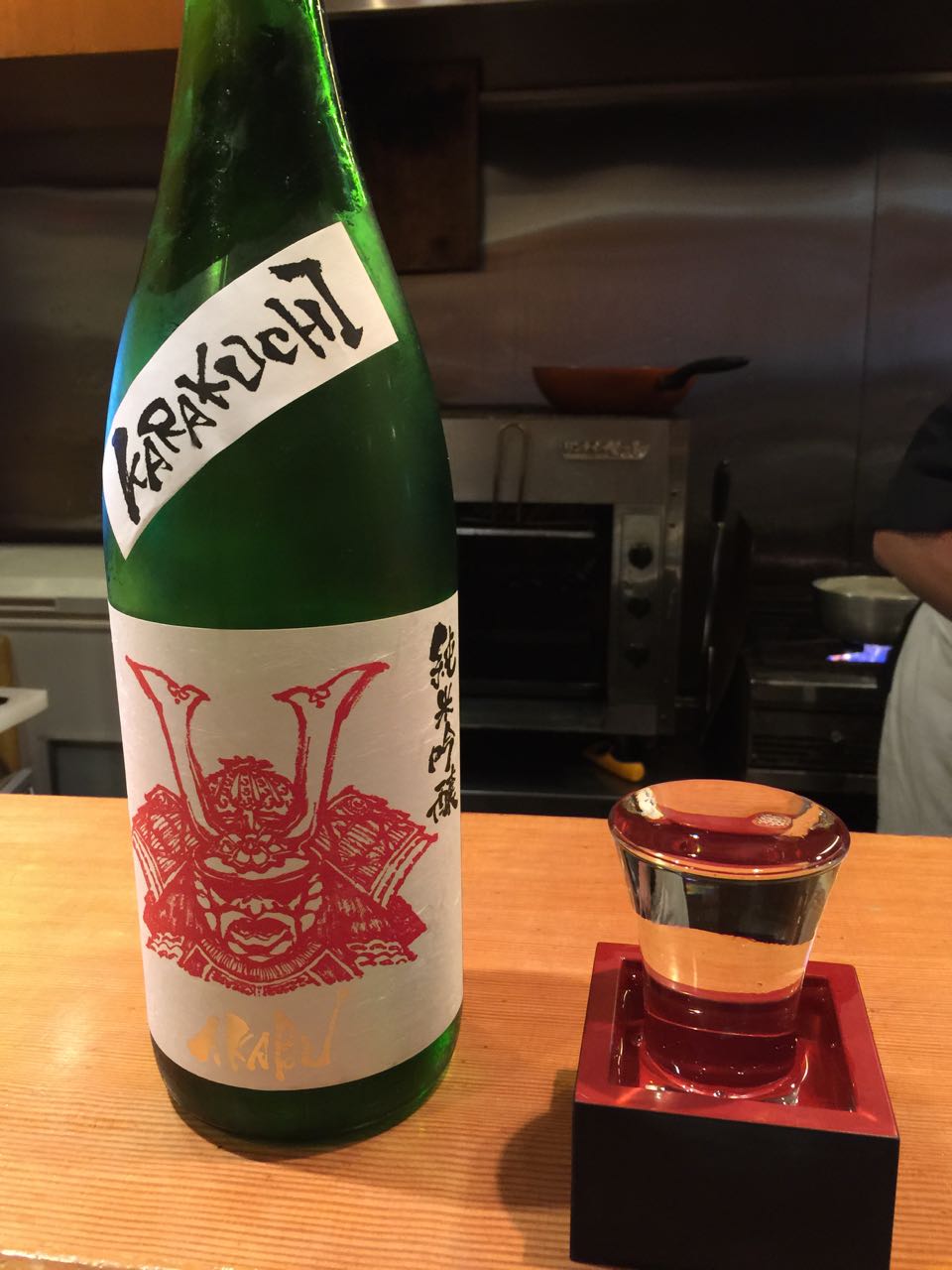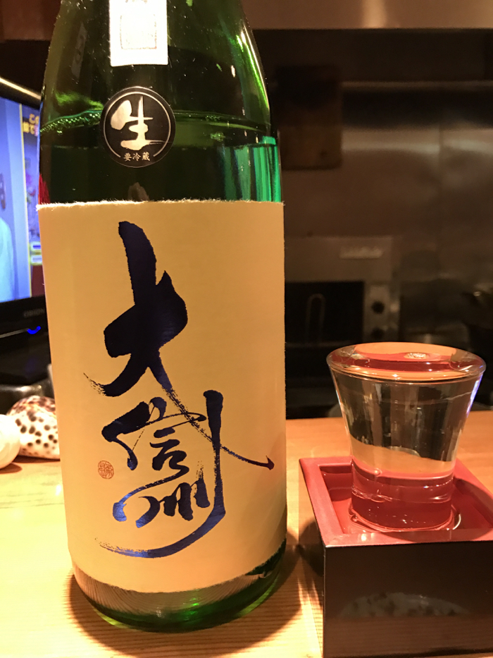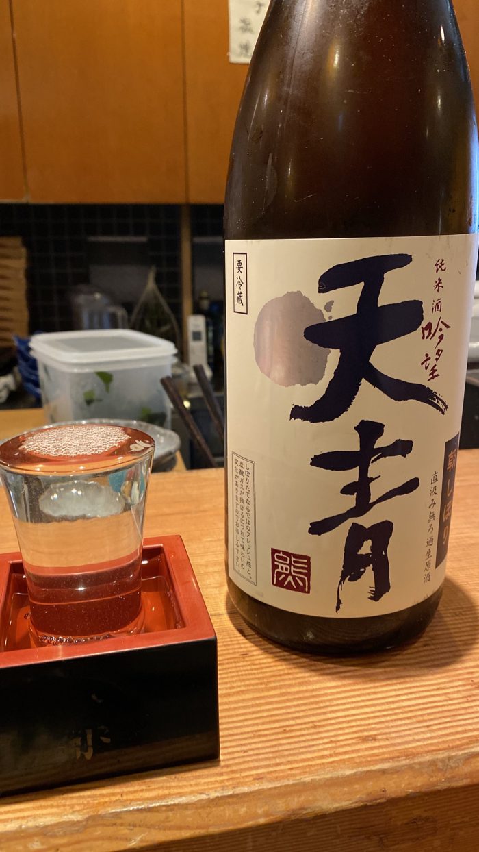 空海はお寿司ももちろん最高だが、珍しい日本酒がいつもゴロゴロしているのも特徴。いつもナベさんお奨めのお酒を出してもらう。今回一杯目は新潟の「天と地」。