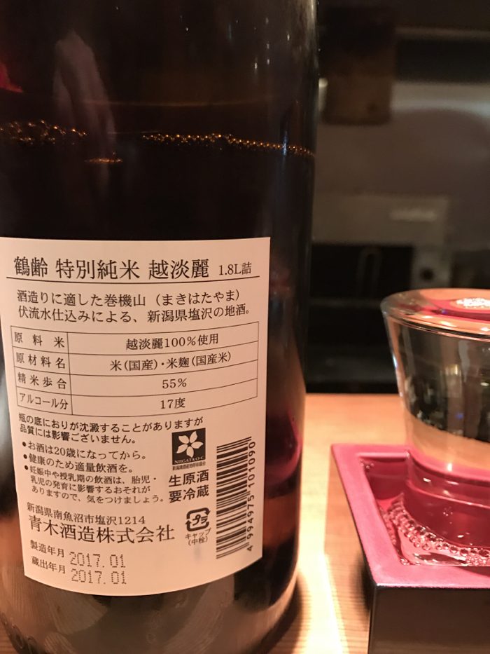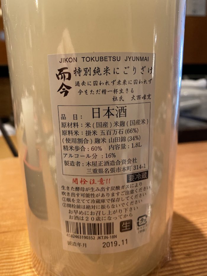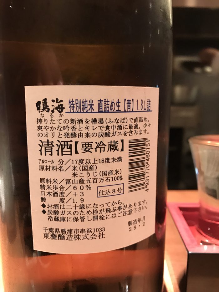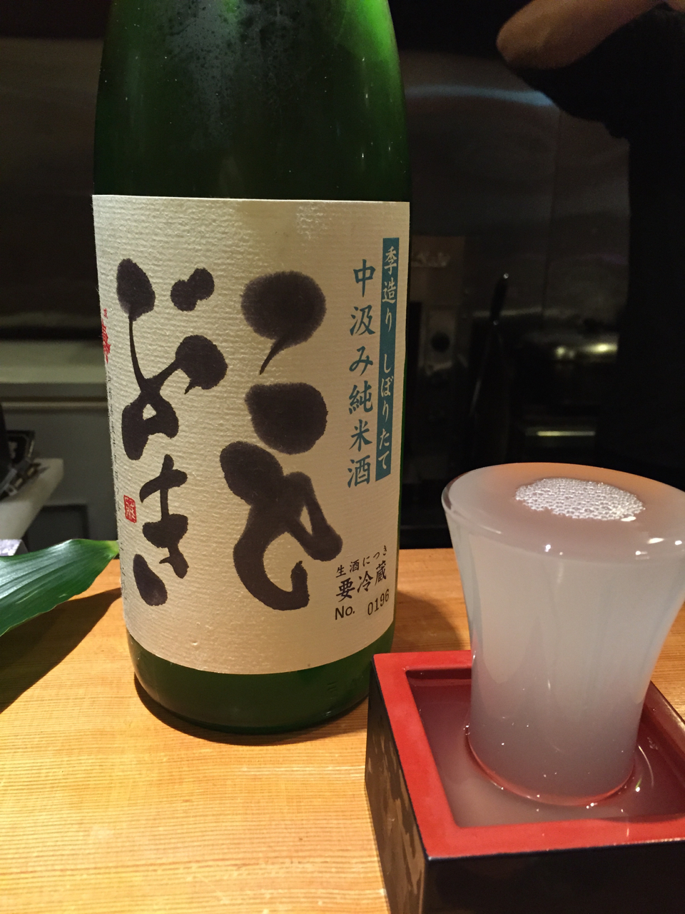 日本酒を冷酒で。これもナベさんのお任せで。鳥取の「こなき純米」。