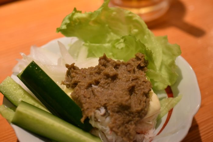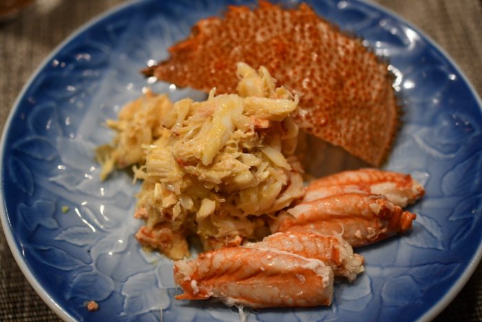 そしてばーん!!ズワイガニ!ほぐしていただいて恐縮です(^_^;)。身が繊細で美味いのだ!