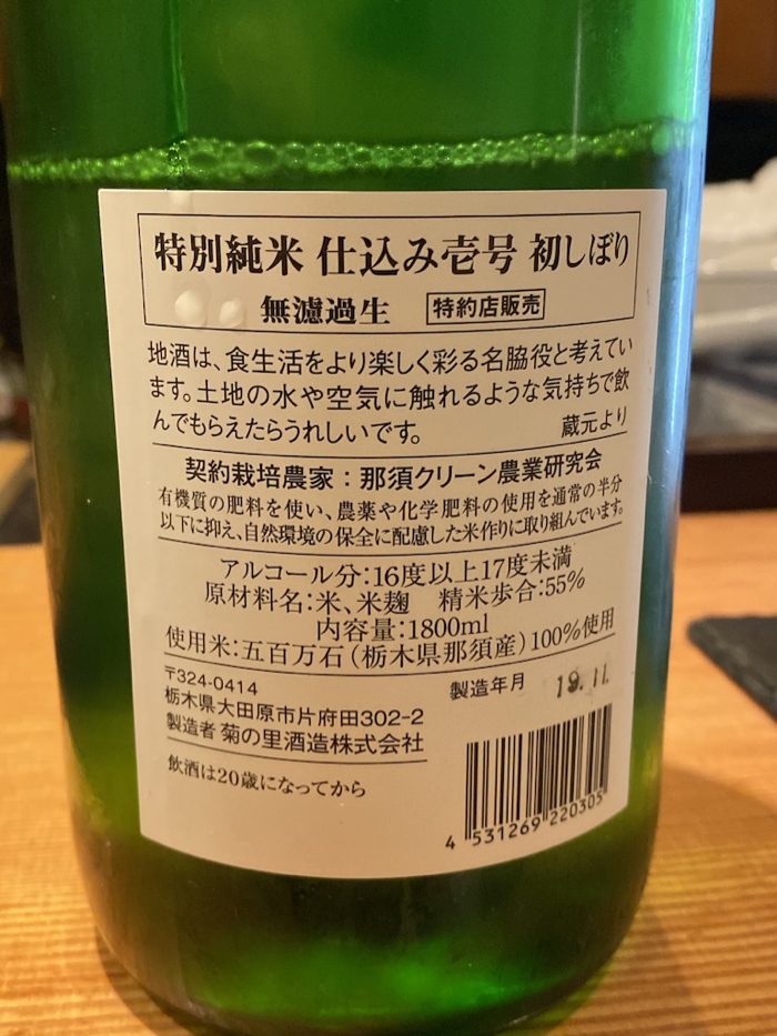 日本酒が進む進む。続いては秋田県の栗林酒造の霞純米吟醸。