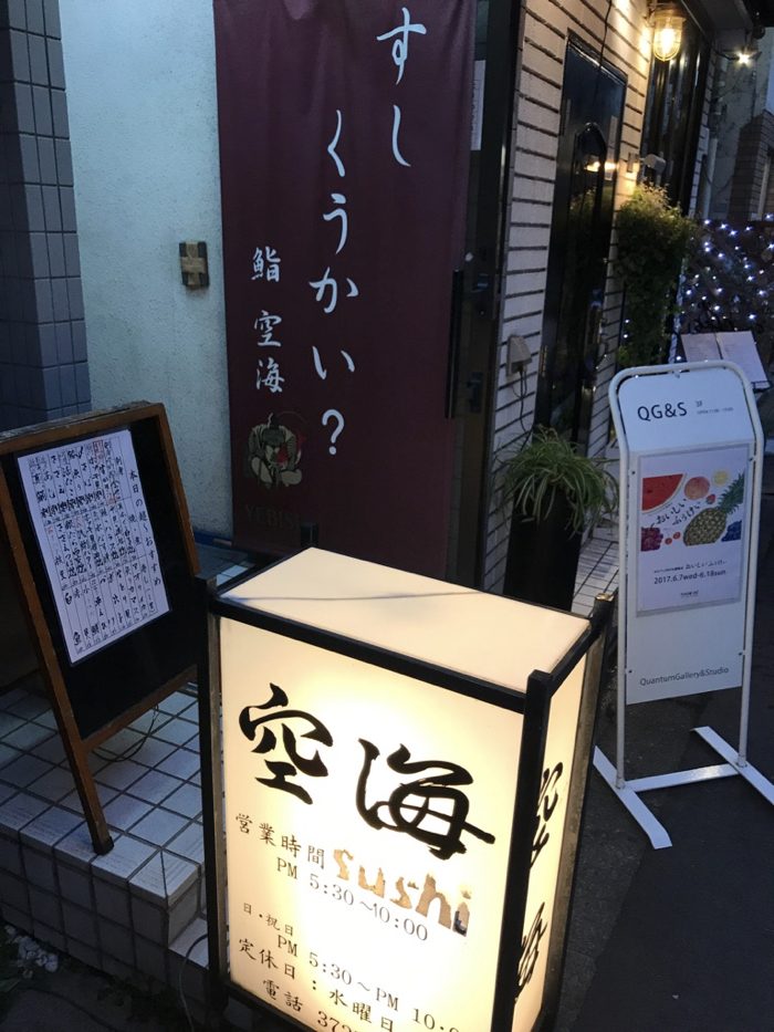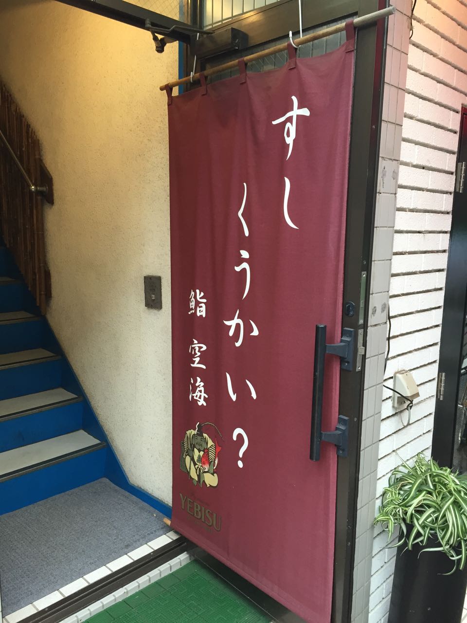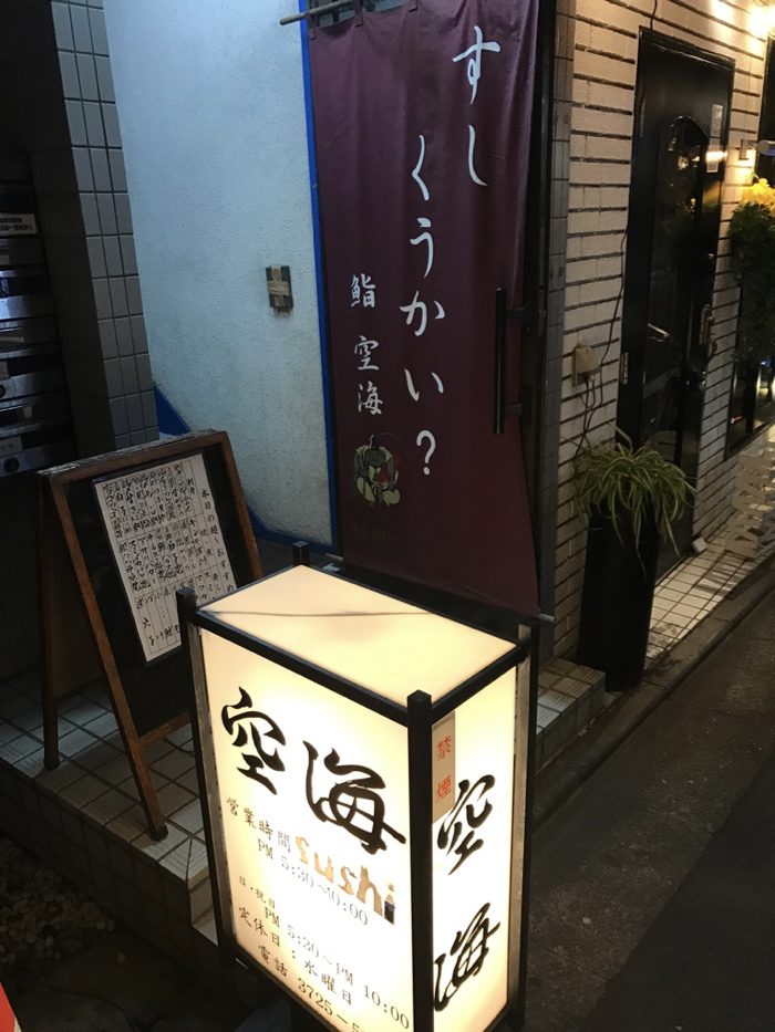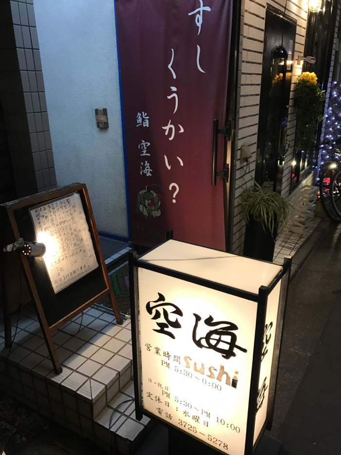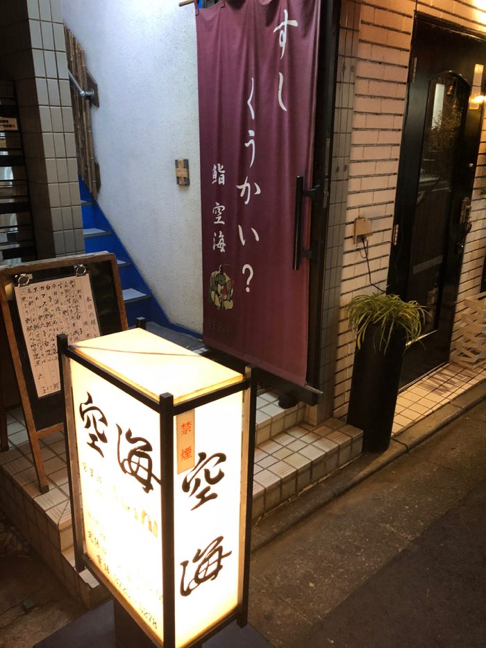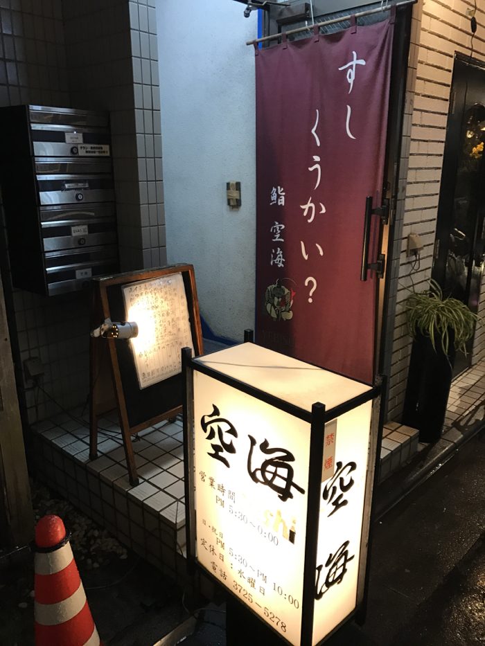 以前ヒロさんとは大井町のさいしょさんでサシ飲みしたのだが、その時から、僕がもう12年以上通い続けている「ナベさん」のお寿司屋さんに連れて行きたい!と騒いでいたのだ。ナベさんのお店とは、東急東横線都立大学駅からほど近いところにある、お寿司屋さん「空海」である。