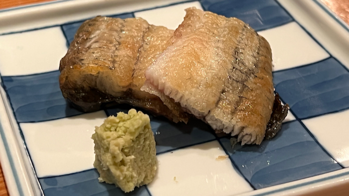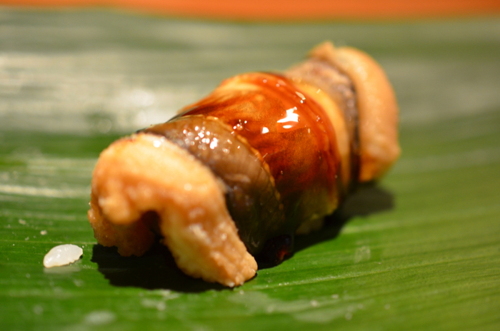 穴子はツメをつけず塩と胡麻で。ふわりの外側をパリッとした風味が包む。