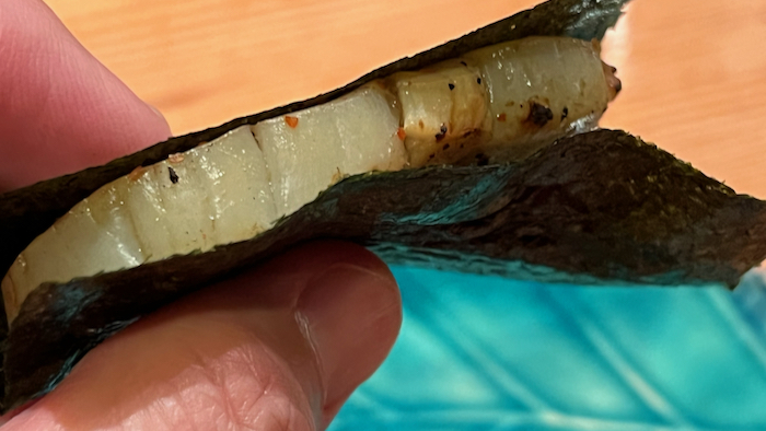 お寿司屋さんの焼きのり美味しいよね。分厚くて真っ黒で、すごく風味がいい。