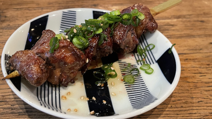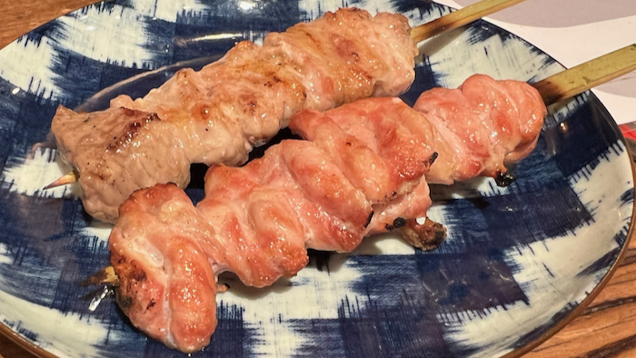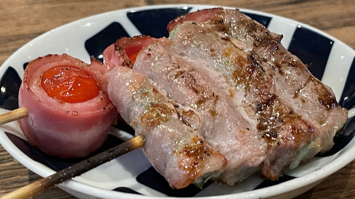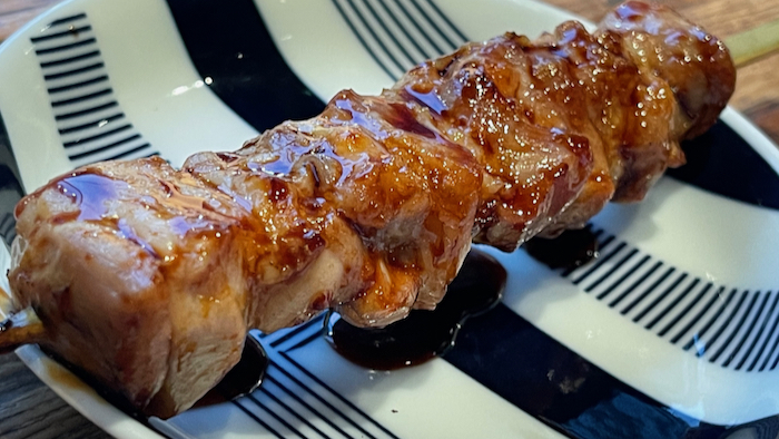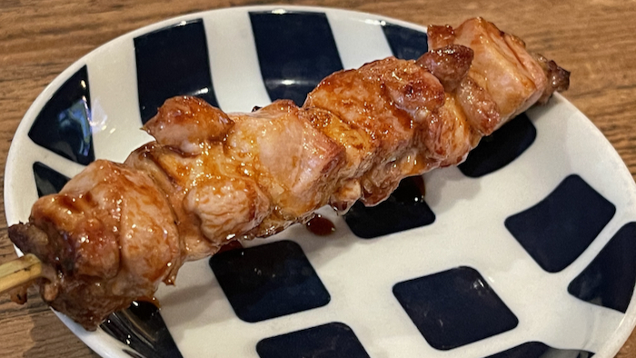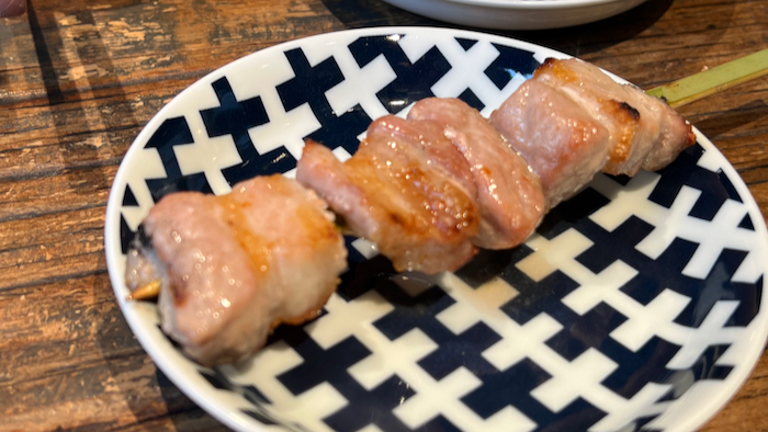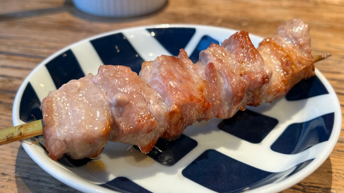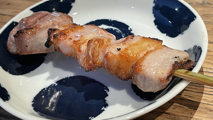 ▲ この日はこの後会食だったので、お料理は豚バラ串1本だけ。