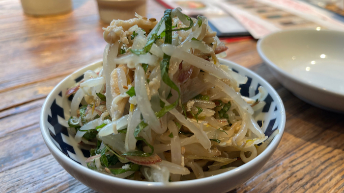 追加でモヤシと鶏ささ身のナムル。