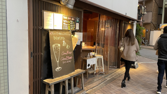 ▲ コロナの時期を乗り越え、ビストロあわはスタンディングバーから着席のお店へと変貌した。