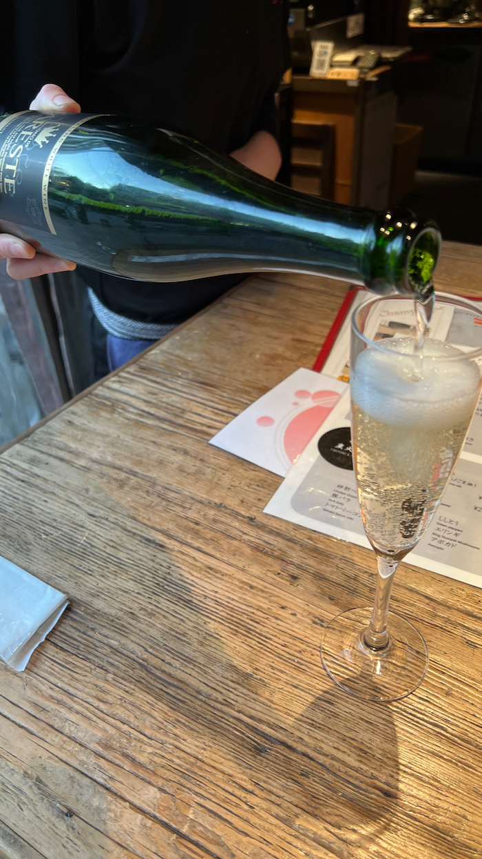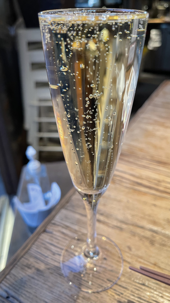 ▲ もちろん今日もこぼれスパークリングでスタート。