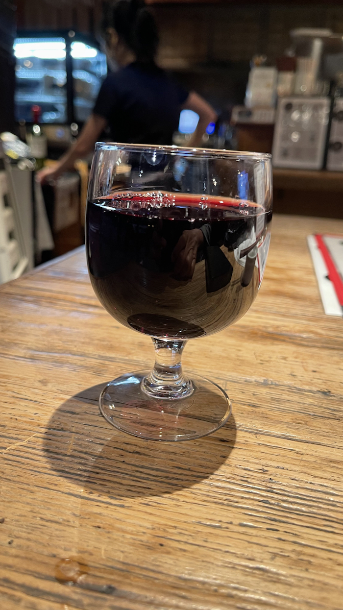 ▲ デルスールのカベルネ・ソーヴィニヨンをグラスで。