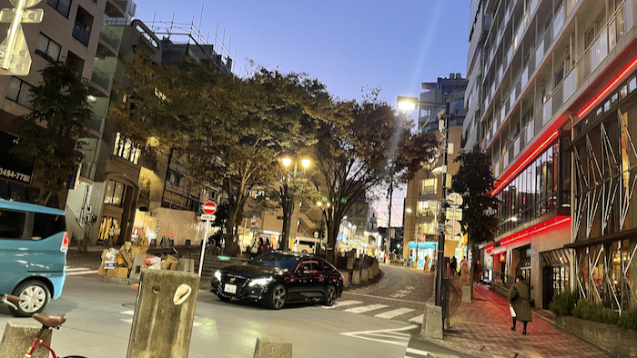 ▲ 暮れゆく麻布十番の景色を眺めながら飲むのも良いものだ。