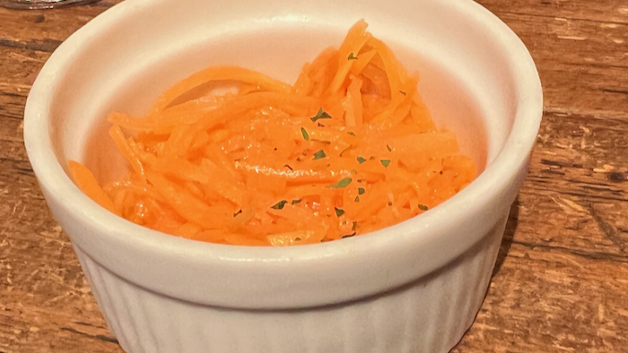 ▲ お通し4種の中からキャロットラペをチョイス。