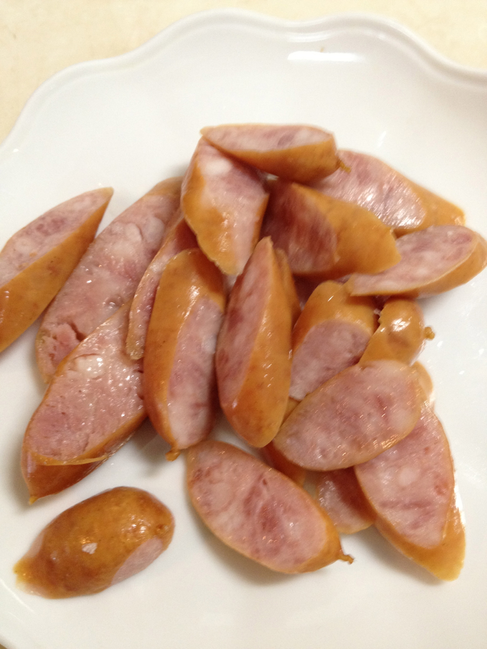 ソーセージは斜めに薄切りにしました。