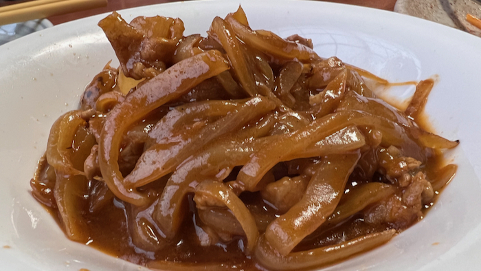 豚とタマネギの甘辛炒め。