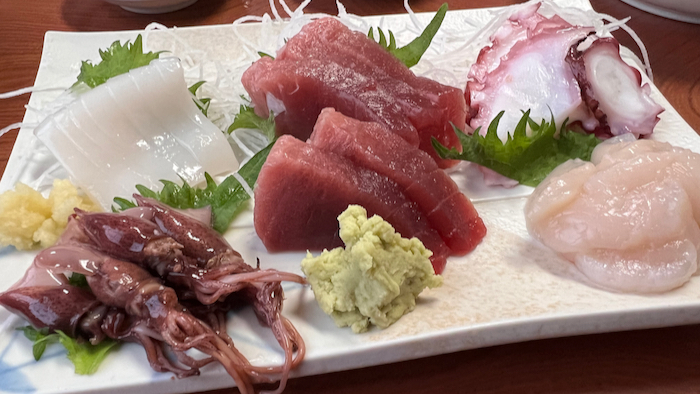 ▲ 刺し身盛り合わせ。