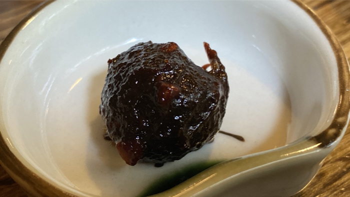 ▲ こいつをつまみつつ、ちびりちびりと樽酒を楽しむ。