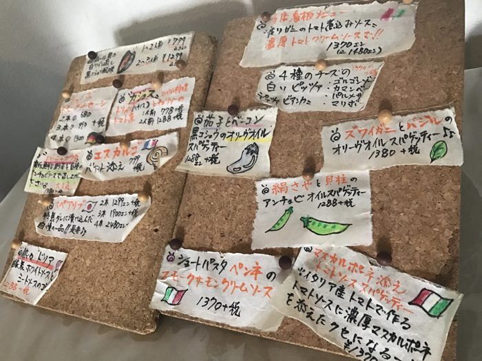 ▲ コルクボードにイラスト付きの手書きメニューが可愛らしい。