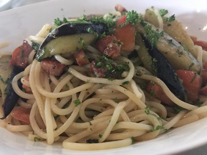 ▲ 僕が頼んだ茄子とベーコンのオイル味のスパゲッティ。