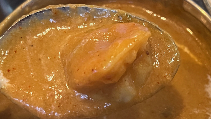 ▲ 初挑戦だったが、マイルドな辛さで海老の風味がカレーにたっぷり染み出していて凄く美味しい。