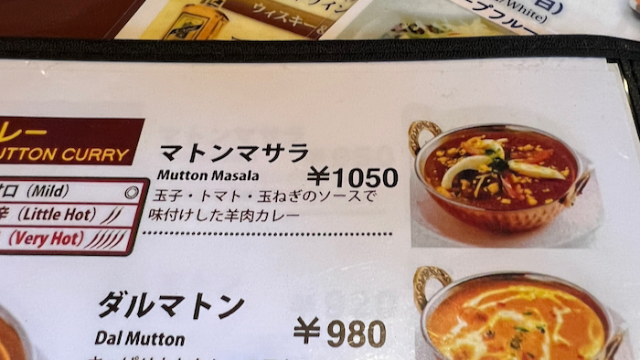 ▲ マトンはどれにするか迷ったが、マトンマサラで。