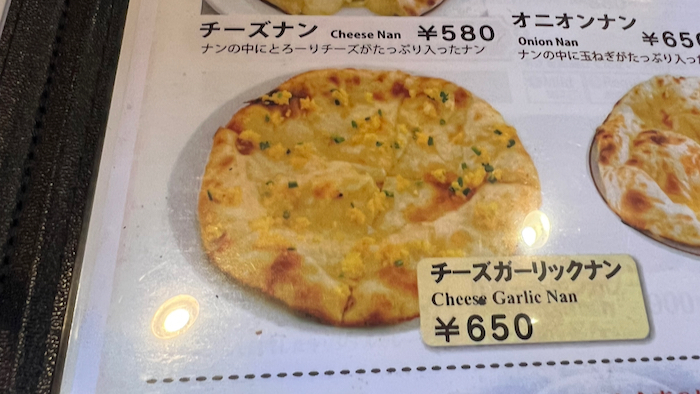 ▲ そしてチーズガーリックナンに変更。
