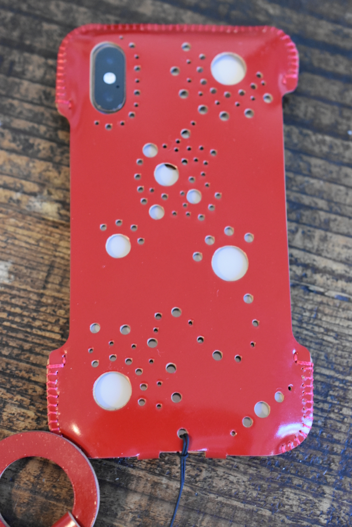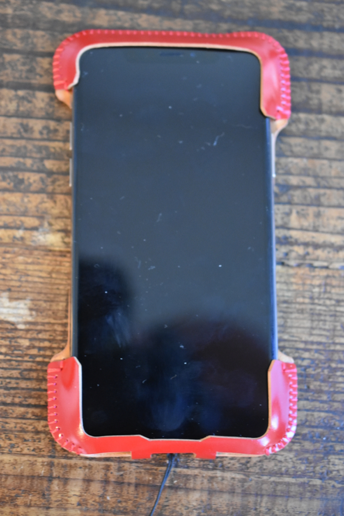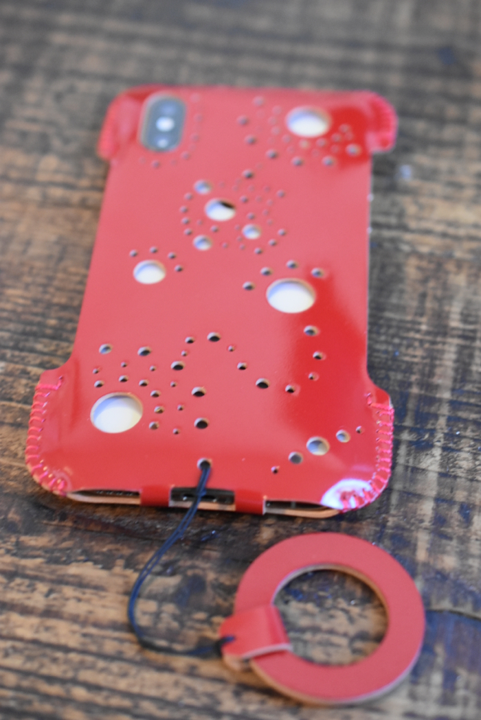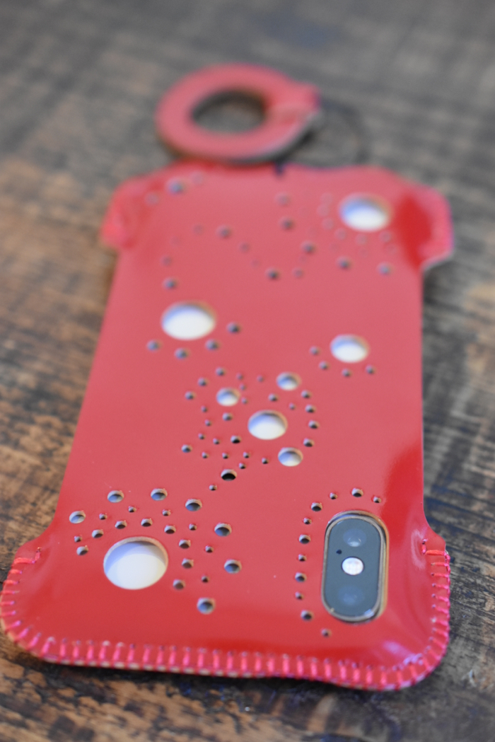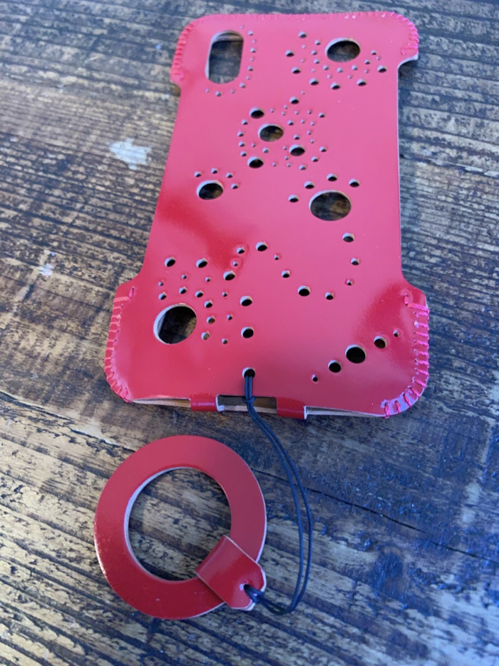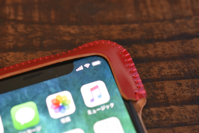 ▲ そして登場、iPhone XS用シンプルジャケット カーマインレッド コードバン。