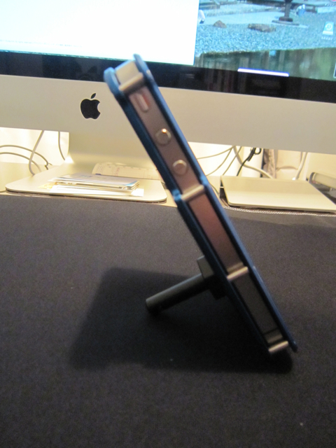そして見逃せない付属品がこちらの小さなスタンド。背面の六角形の穴にピッタリ収まるように設計されている。