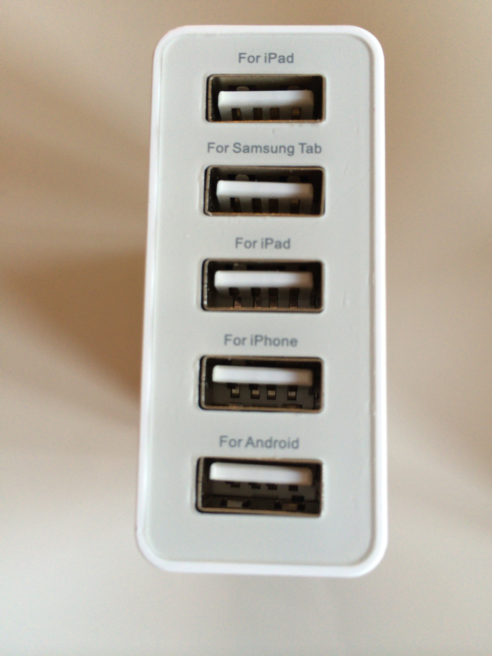 このように、5つのUSBポートにそれぞれ、for iPhone、とか、for iPadなどと書かれている。