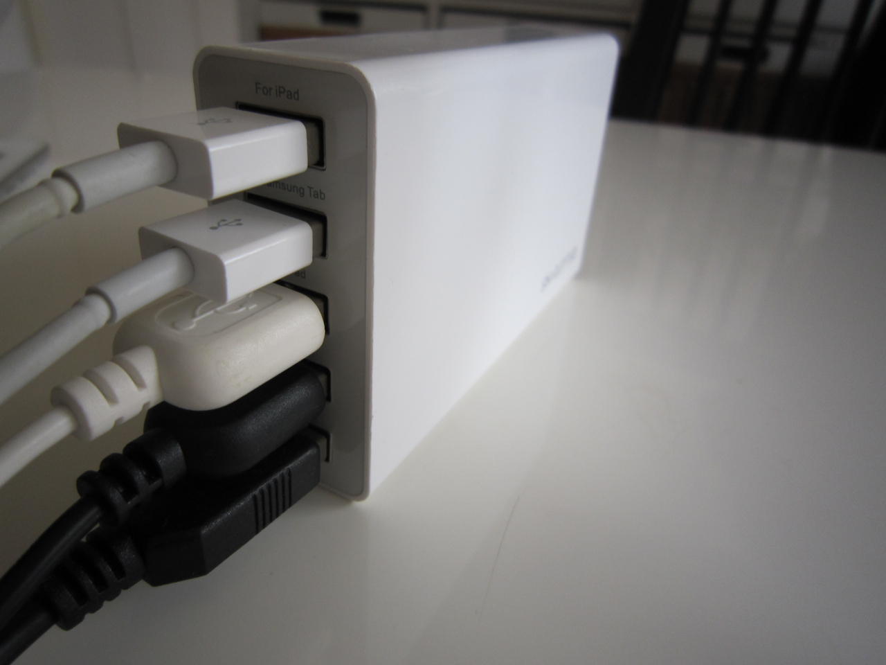 この充電器を購入するまでは、それぞれのモバイル機器のACアダプタを別々に持って歩いていて、非常に邪魔だった。