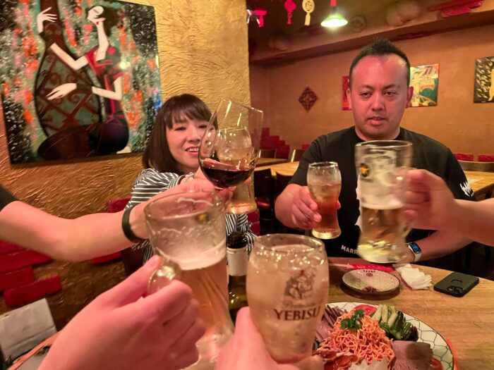 ▲ 美味しいお料理とお酒を楽しみつつ、ワイワイとお話しをします。