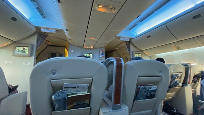 他にもキャビンアテンダントさんが乗客一人ひとりに自己紹介して挨拶してくれるとか、スーツの上着やコートを預かってくれる、無料のスリッパが用意されているなど、細かいサービスがいろいろある。