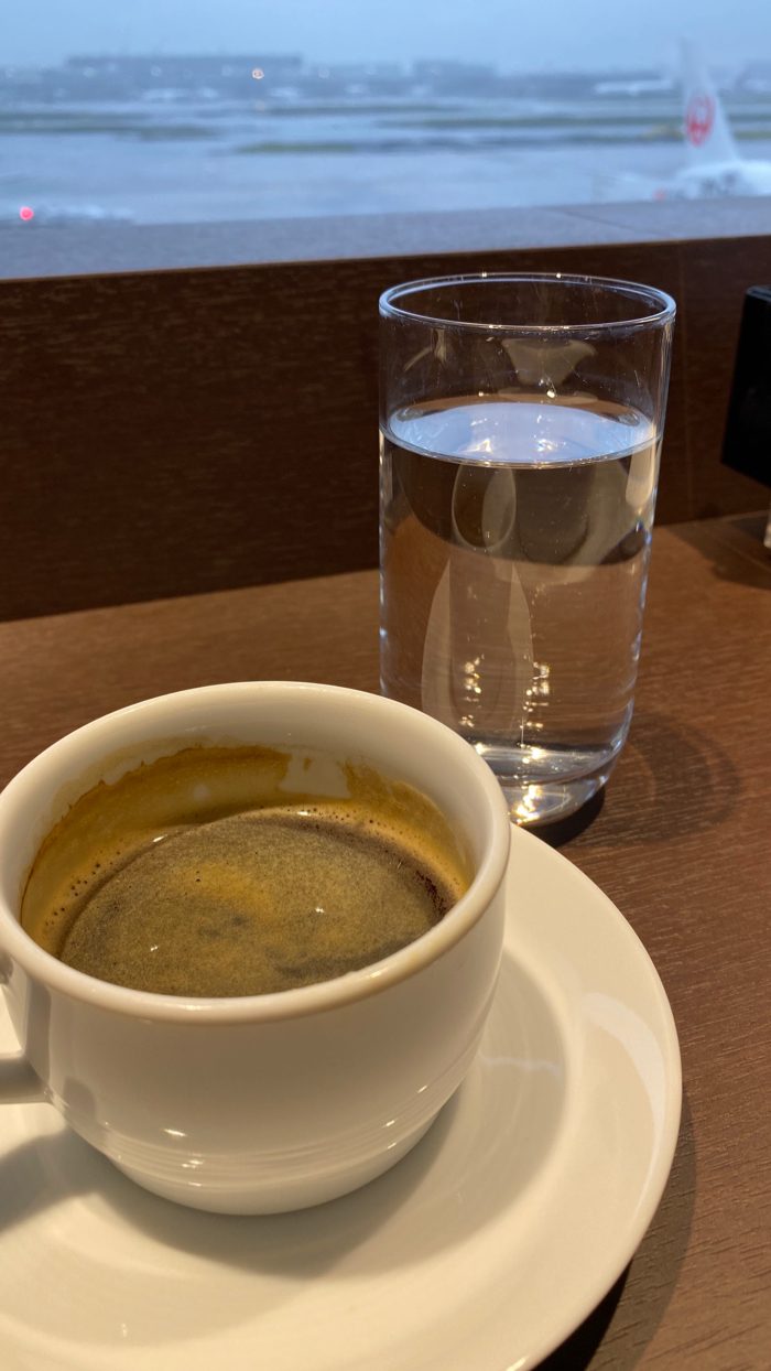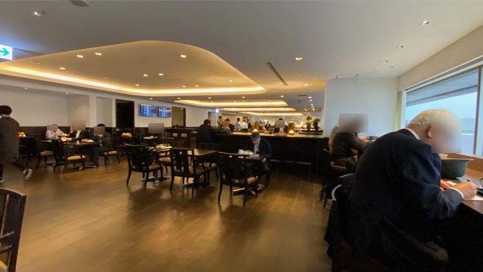 国際線や海外のラウンジと比べるとごく簡素なラウンジだが、電源と電波の心配なく仕事ができるのはありがたい。