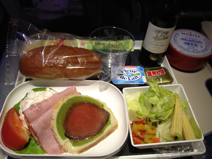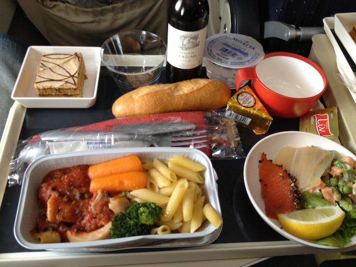 ▲ 1回目の機内食。これが抜群に美味しかった。