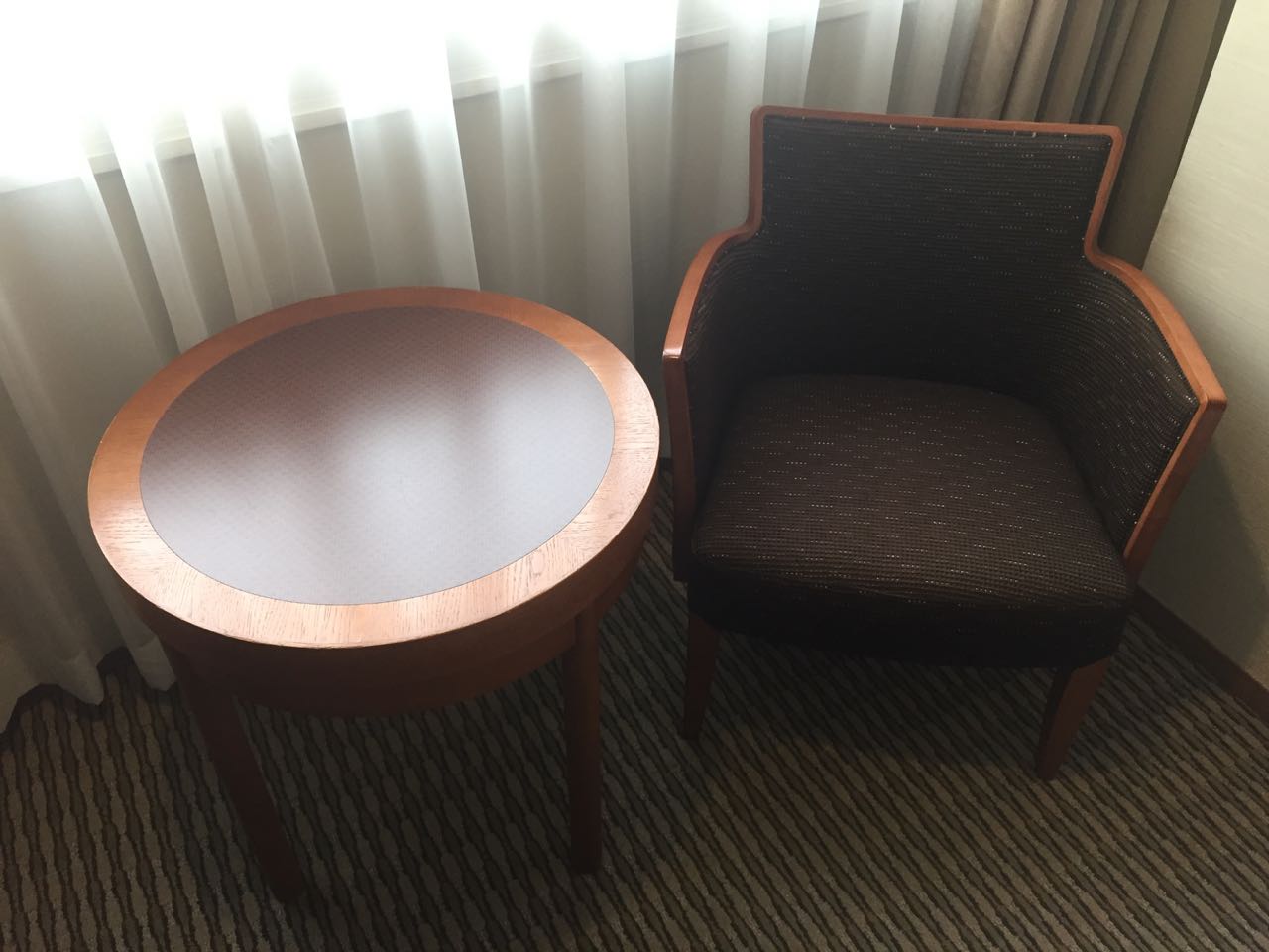 円い小さなテーブルと一人がけのソファー。