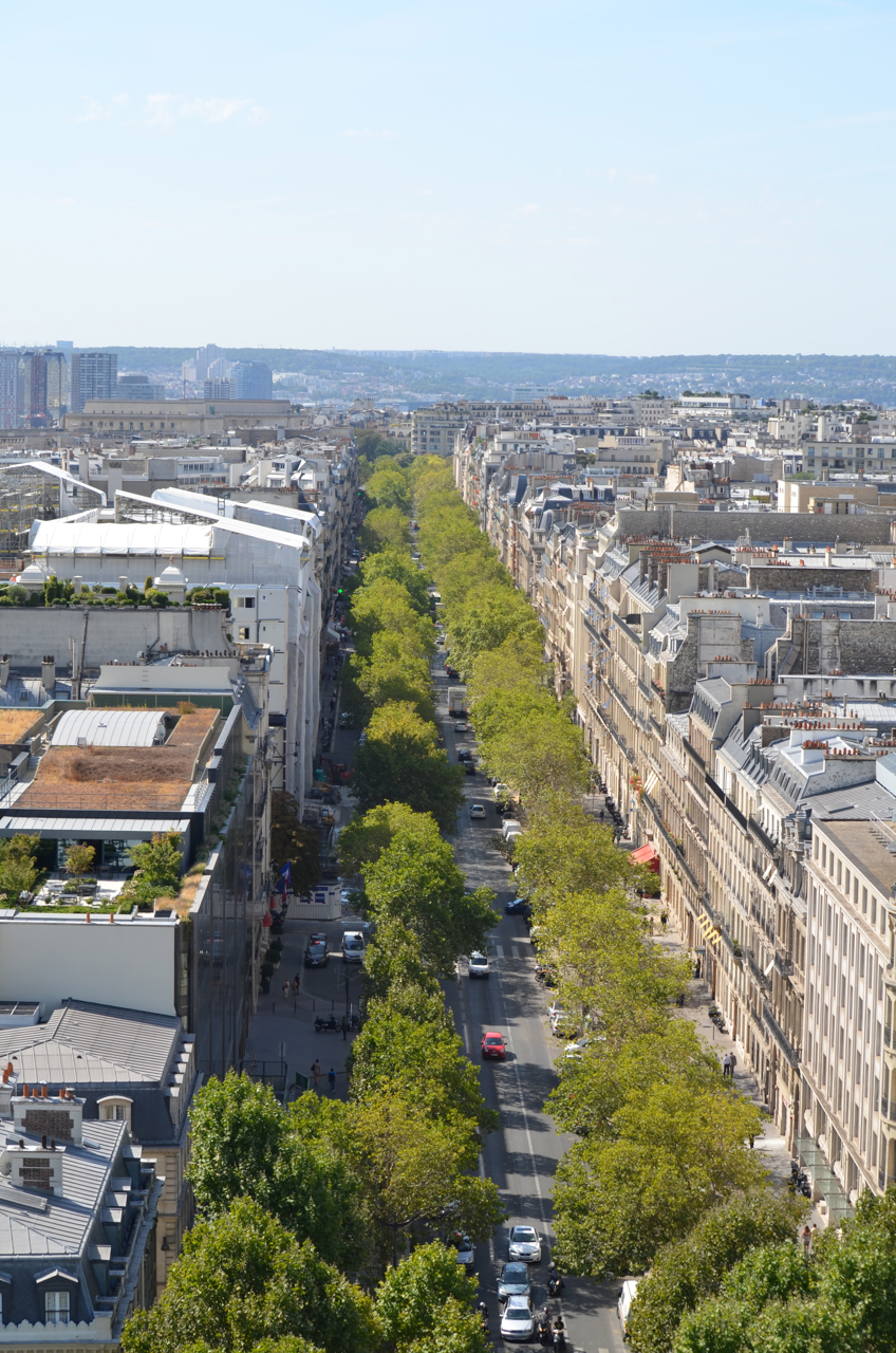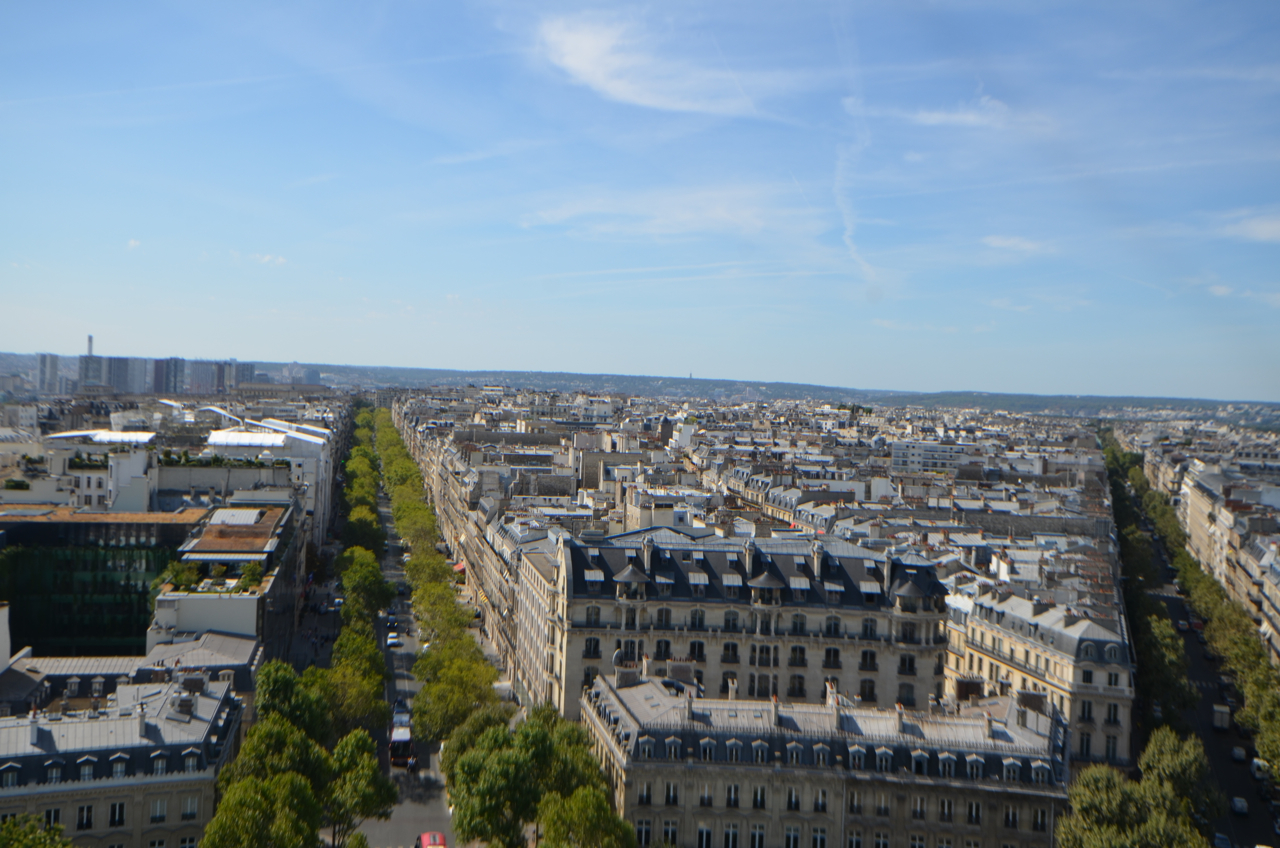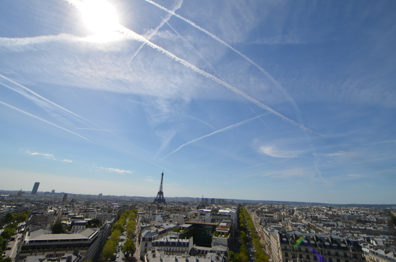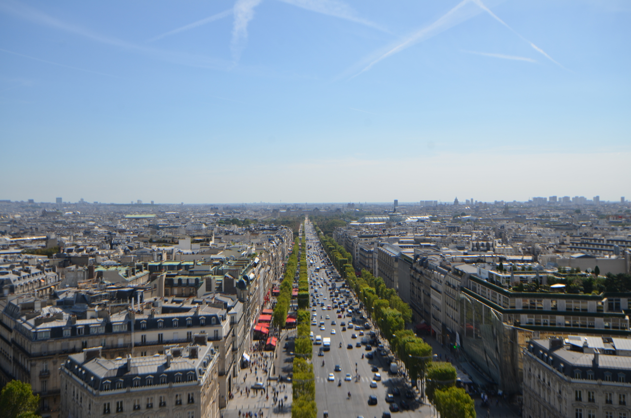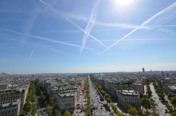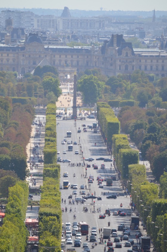 超望遠レンズで撮影したシャンゼリゼからコンコルド広場、そしてその奥にルーブル美術館。