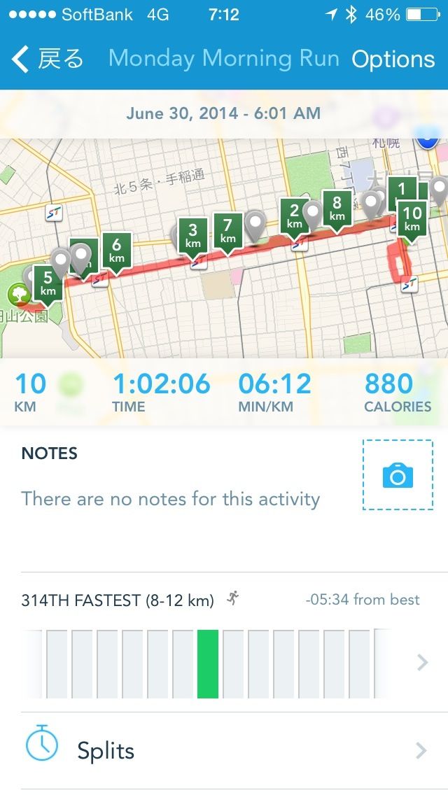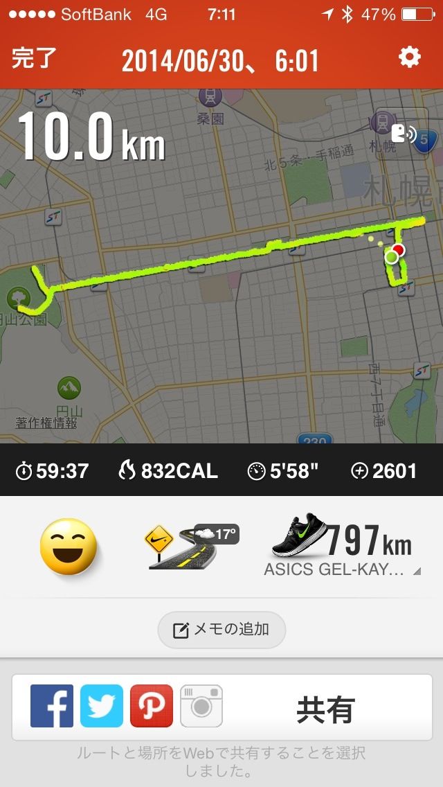 6月はあまり長距離走れていなかったので、6km、7km、10kmと続けて走れて満足。