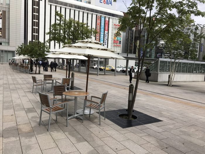 ▲ ランチのあとは札幌駅前のテラス席でブログ書いてノマド。