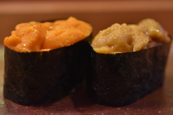 ムラサキウニとエゾバフンウニのコラボ。