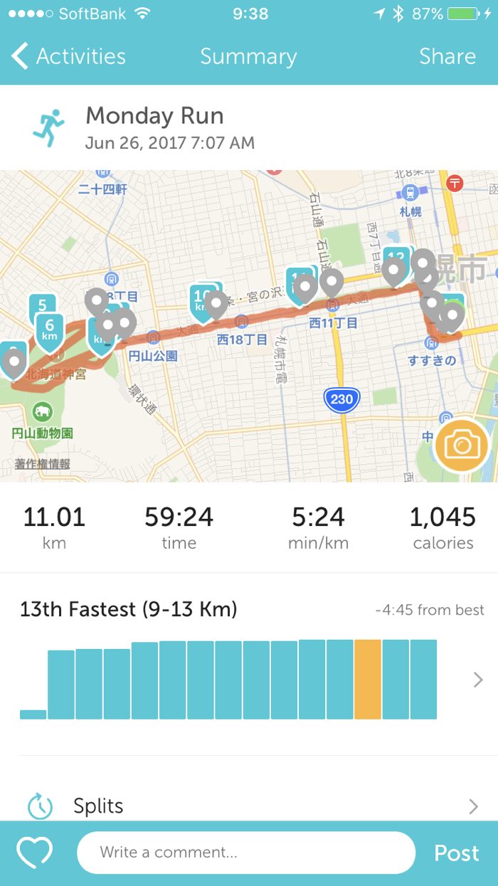 前回、前々回と札幌は走っているのと、道が碁盤の目なので記憶頼りでも走れる。