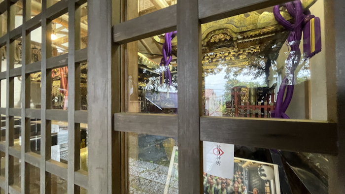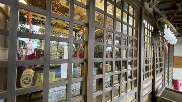 ▲ 扉越しで分かりにくいが、右に見えているのが旧諏訪神社のお神輿。