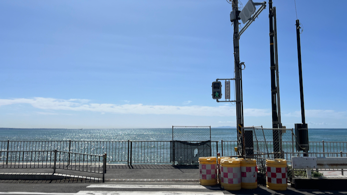 坂ノ下の海浜公園脇の海沿いの道。