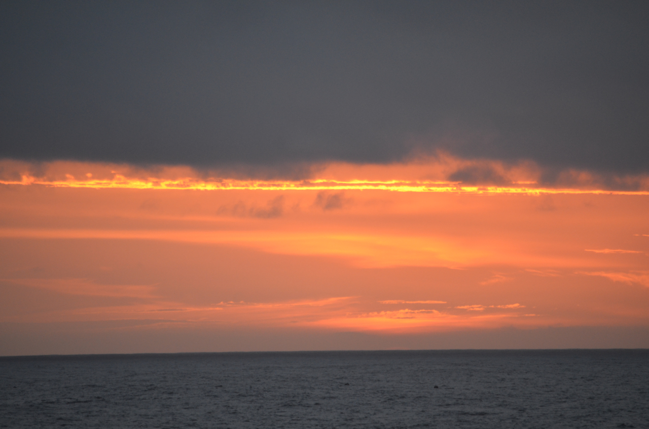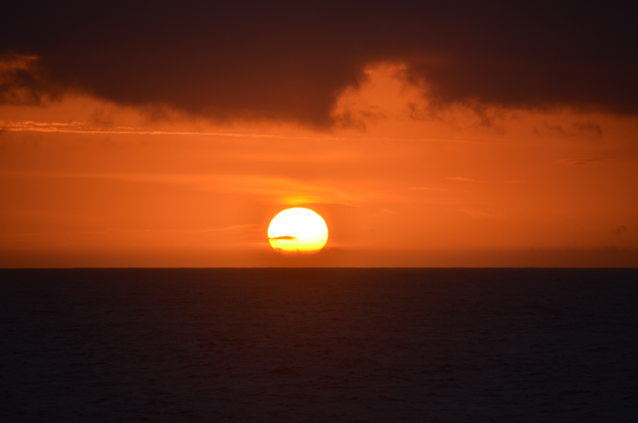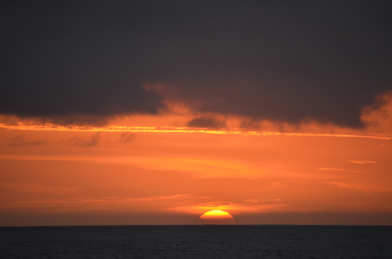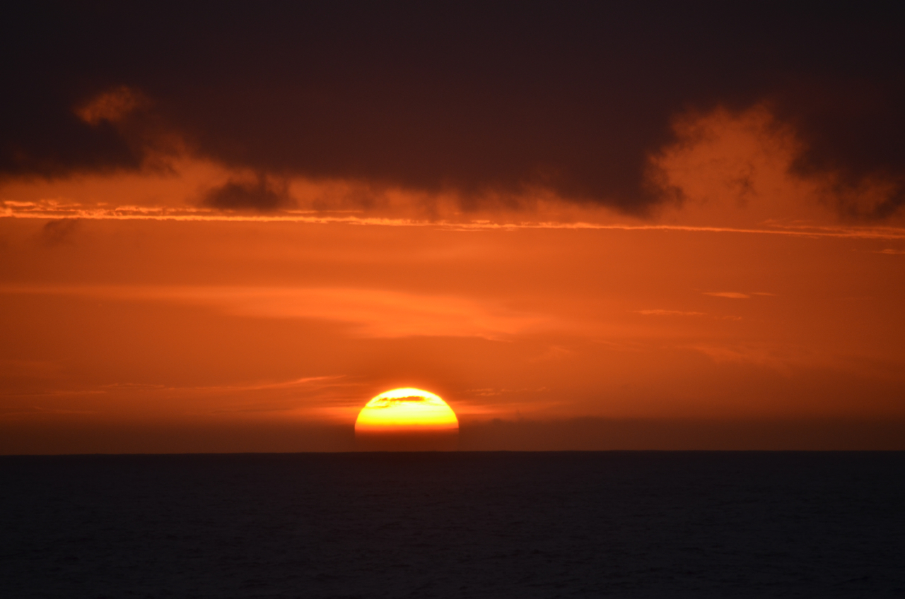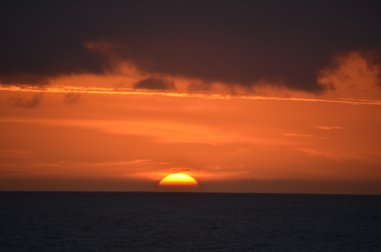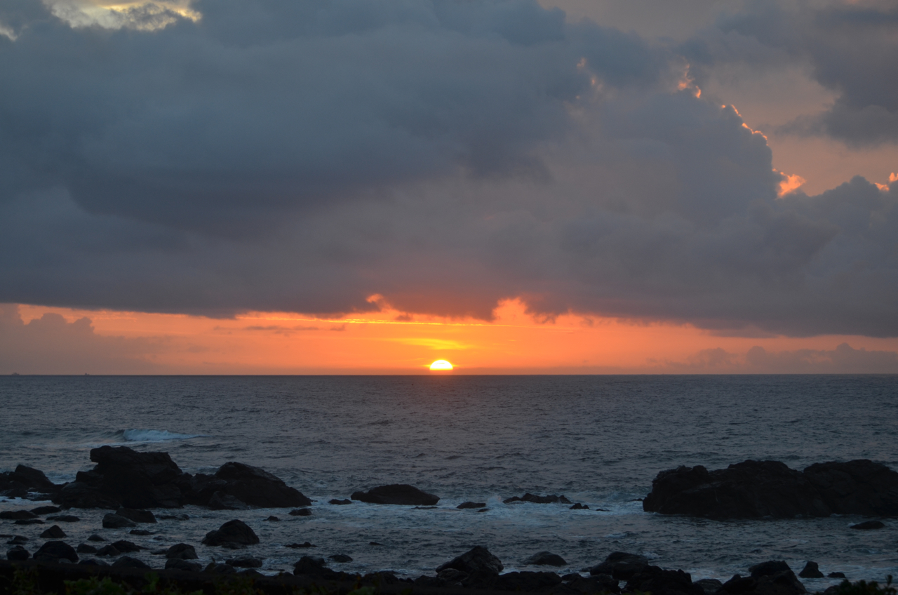 まさに日の出が始まってから、太陽全体が顔を出したほんの1〜2分の間だけ、雲が途切れて完全な形で太平洋から昇る太陽を観ることができた。