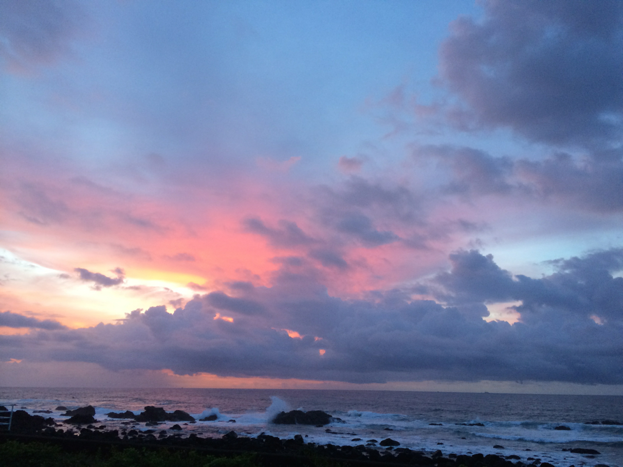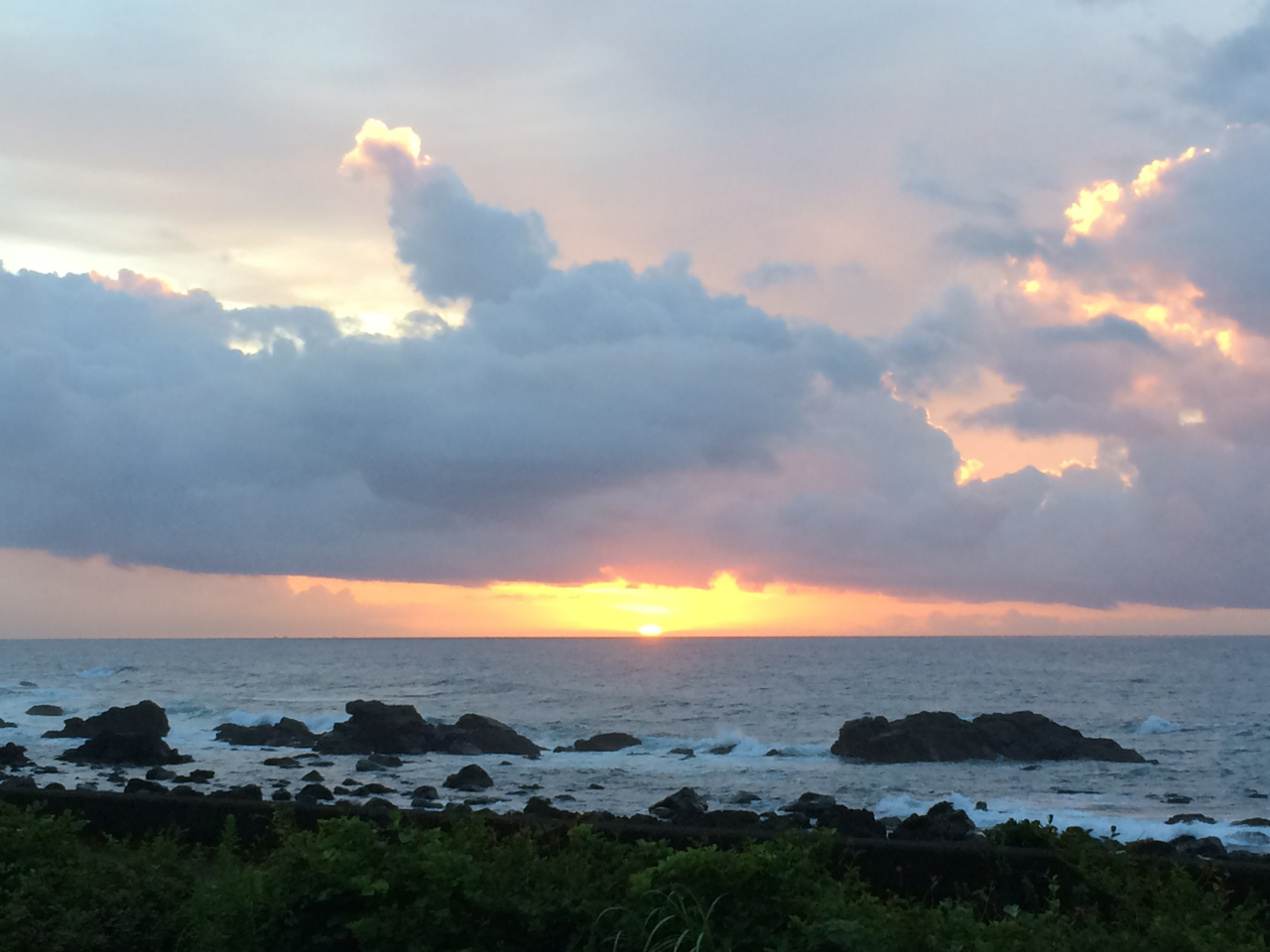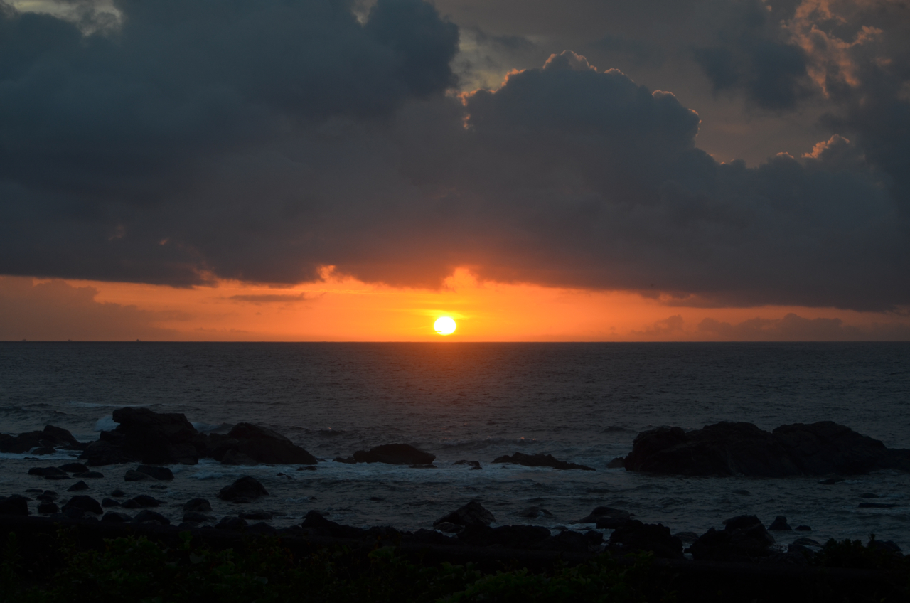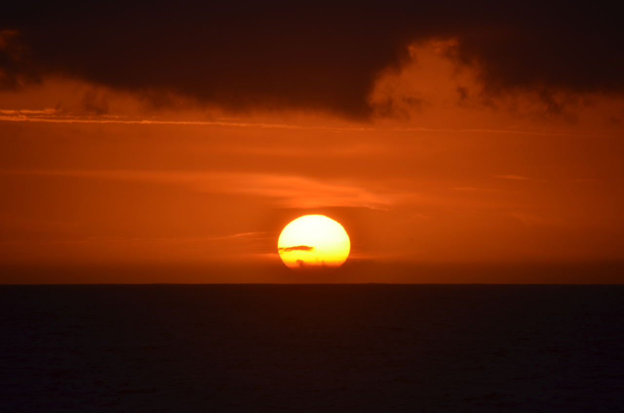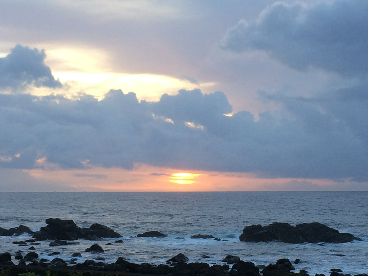 まさに日の出が始まってから、太陽全体が顔を出したほんの1〜2分の間だけ、雲が途切れて完全な形で太平洋から昇る太陽を観ることができた。