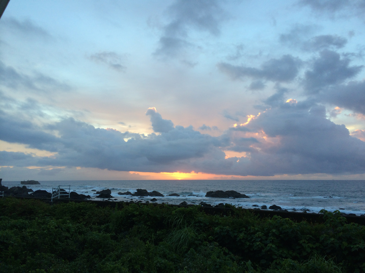 こちらはiPhoneで撮った写真。日本の夜明けだ!!