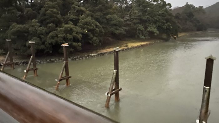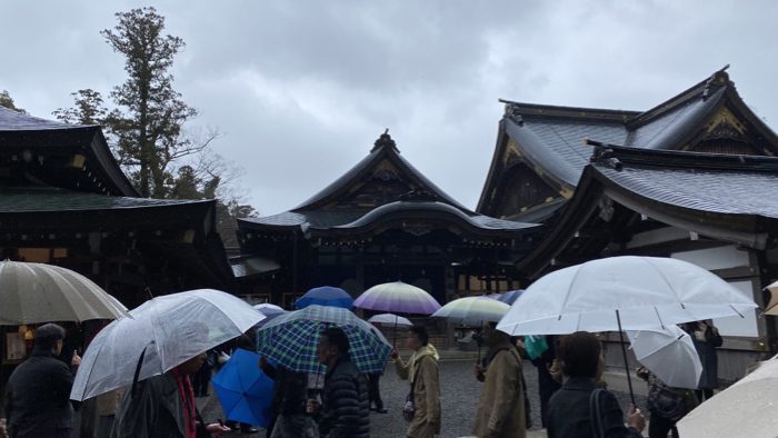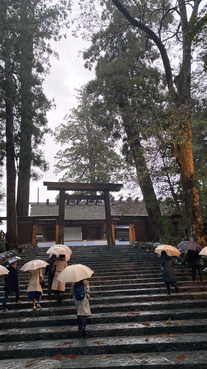 ザーザー降りの雨の中、傘もコートも置いて雨に濡れての御垣内参拝は、とても清々しく荘厳な体験だった。