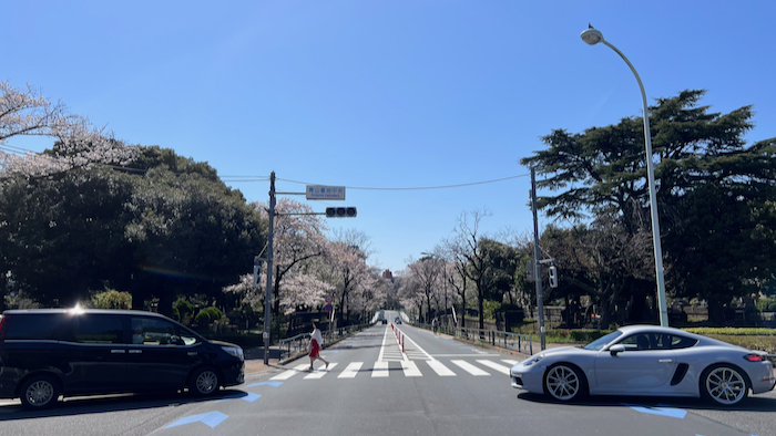 ▲ 中央交差点から根津美術館方面にも桜並木がある。