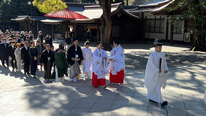 結婚式を挙げる方たちの隊列と遭遇。