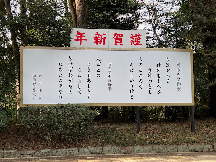 ▲ 謹賀新年とともに明治天皇、昭憲皇太后が詠まれた歌が書かれている。